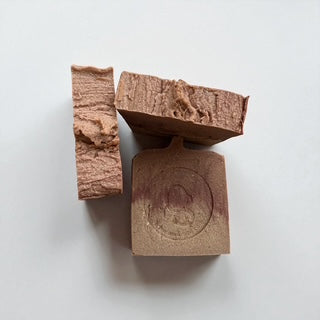 OLIVE OIL POMACE, COCONUT OIL, SHEA BUTTER, SWEET ALMOND OIL, CASTOR OIL, GOAT MILK POWDER, CACAO POWDER, OATMEAL, KAOLIN, TITANIUM DIOXIDE, COLOR, FRAGANCE, WATER